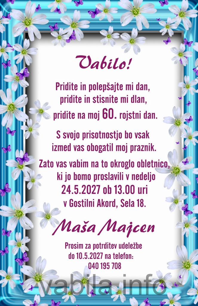 Vabila za rojstni dan 60 let – komplet 10 vabil + kuverte – 633